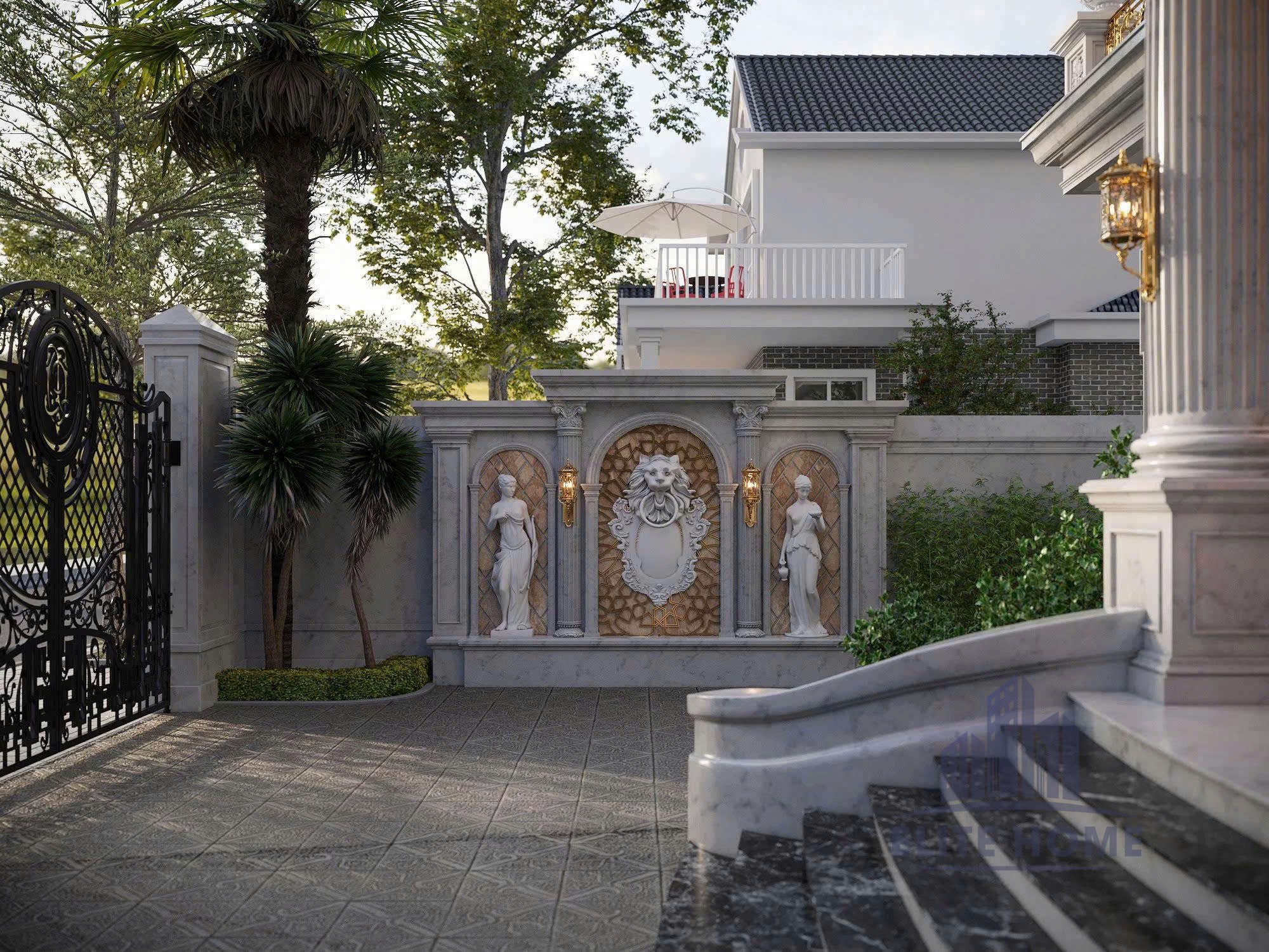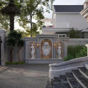 Tại elitehome.com.vn, chúng tôi coi sảnh chính là lời chào trang trọng của gia chủ. Lối vào được thiết kế như một cổng chào cung điện với: