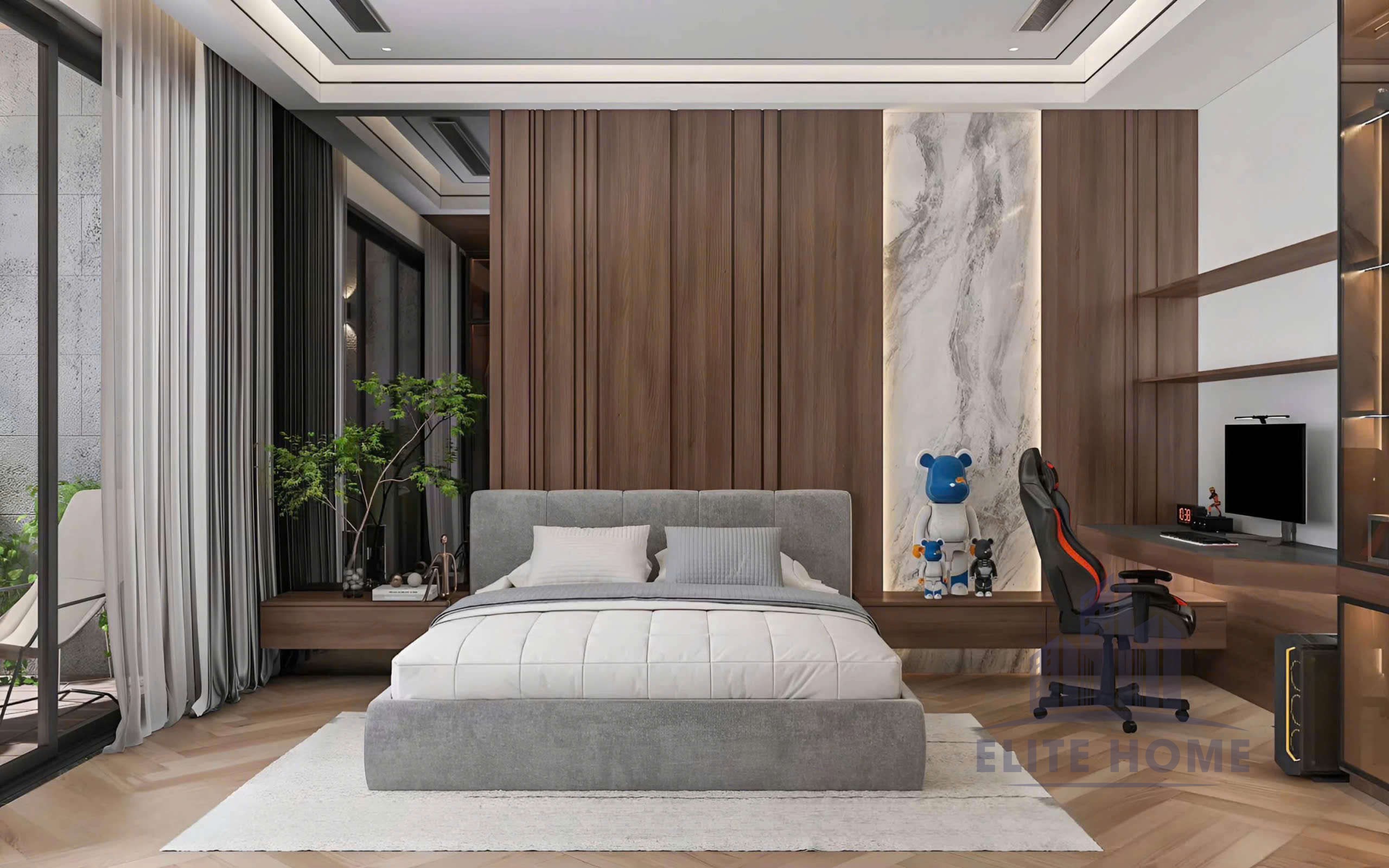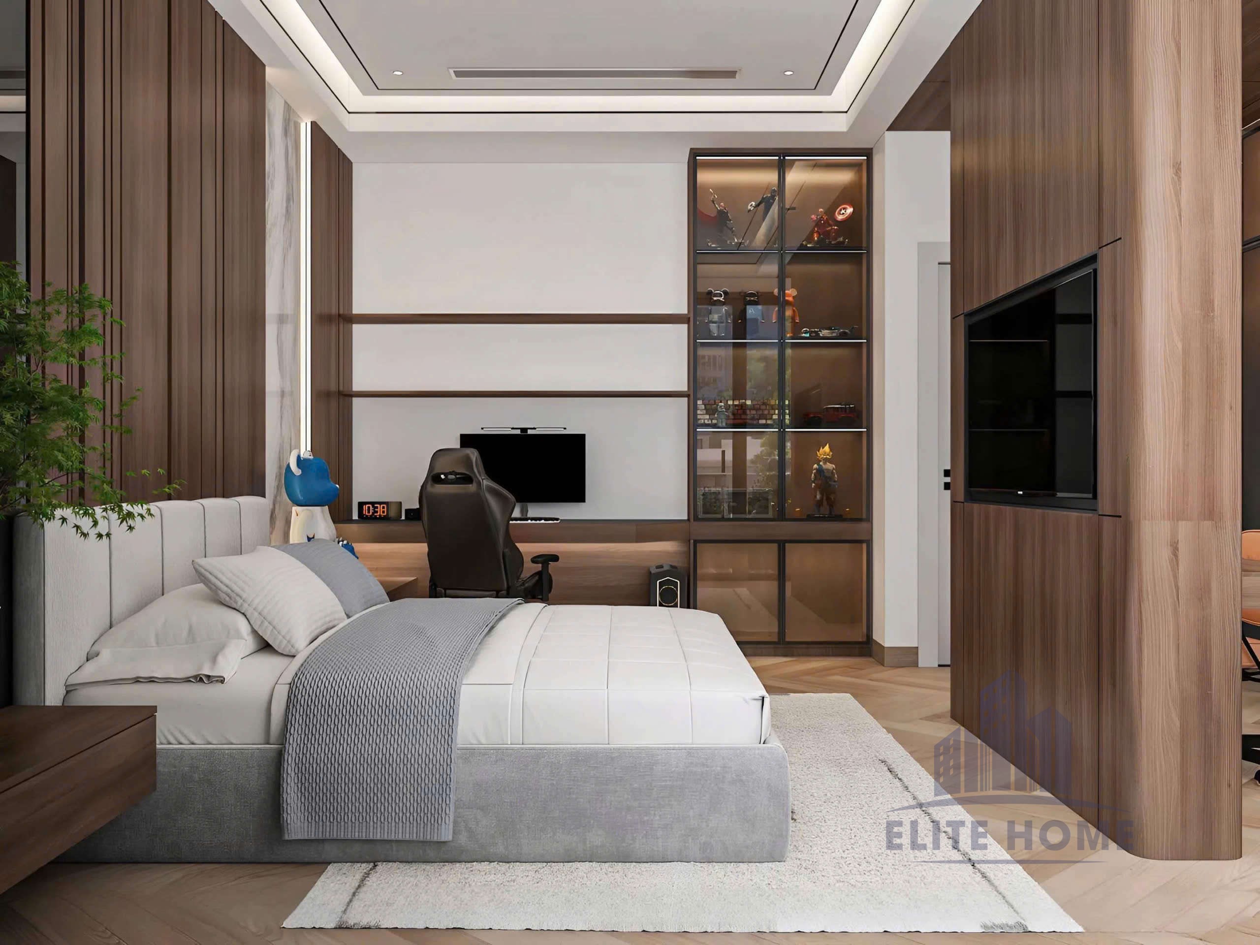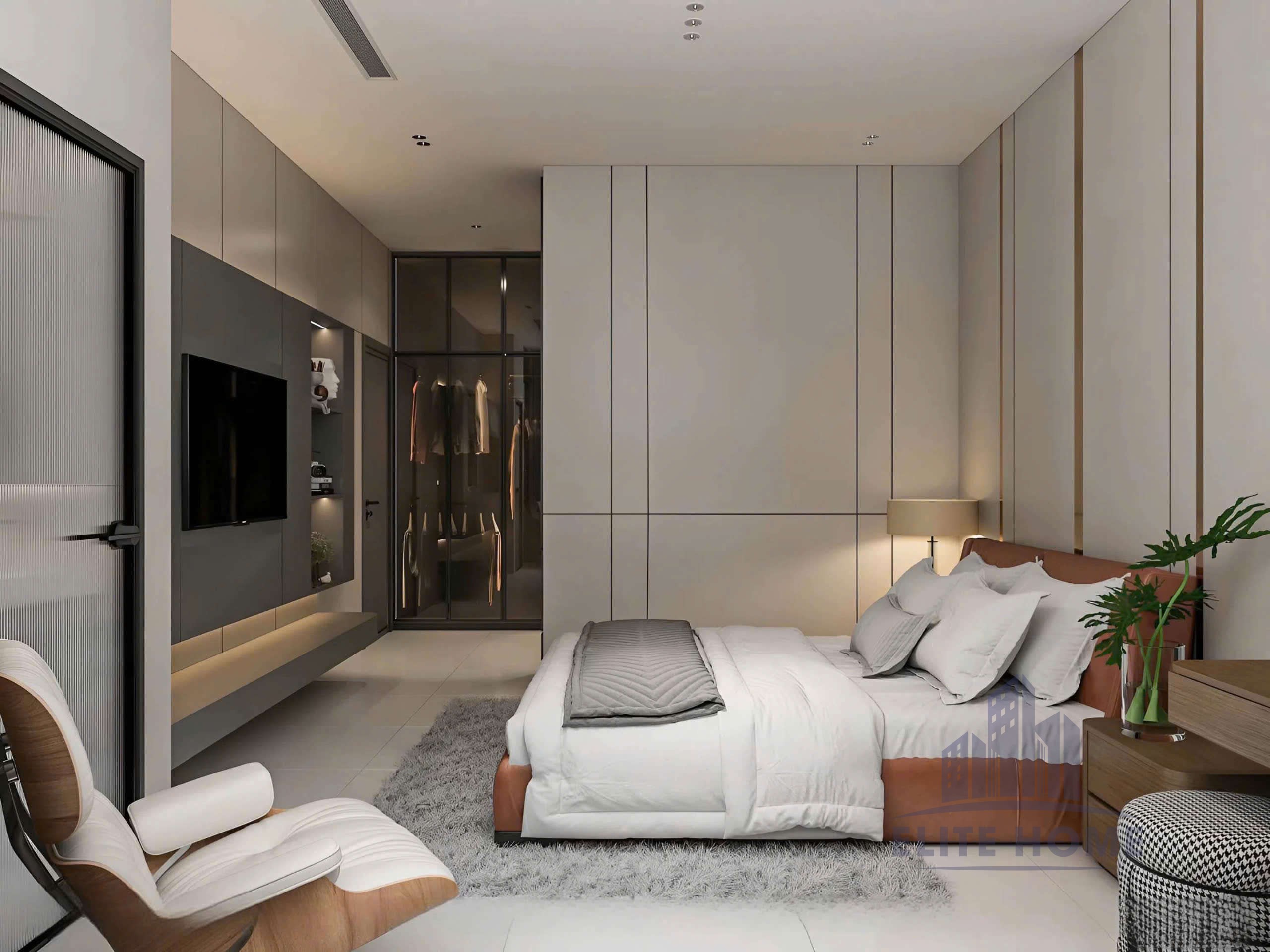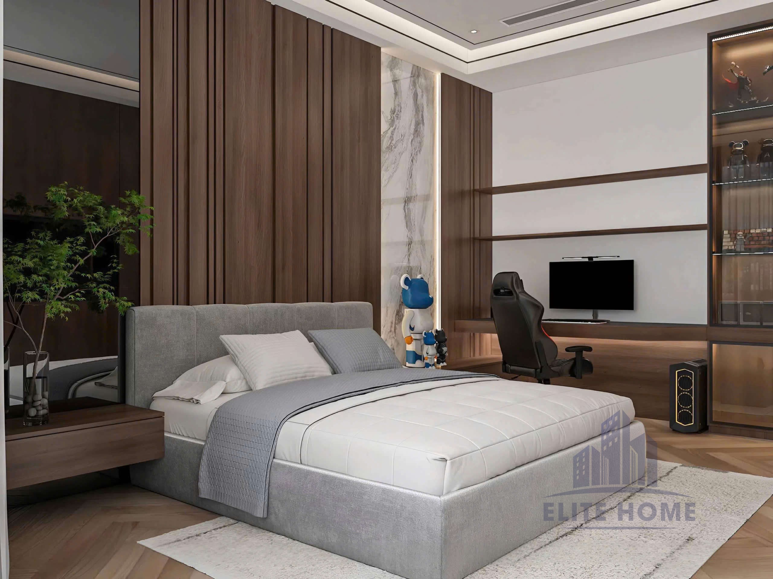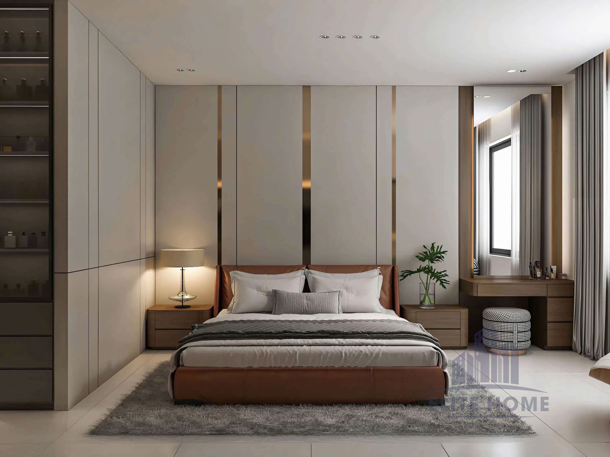 Trong nhịp sống hối hả, phòng ngủ không chỉ là nơi để ngủ, mà là không gian để tái tạo năng lượng và tận hưởng sự riêng tư tuyệt đối. Mẫu thiết kế nội thất phòng ngủ Master dưới đây được Kiến Tạo Elite Home thực hiện theo triết lý “Tối giản để Sang trọng”, nơi mỗi đường nét đều mang mục đích tối ưu hóa trải nghiệm của gia chủ.