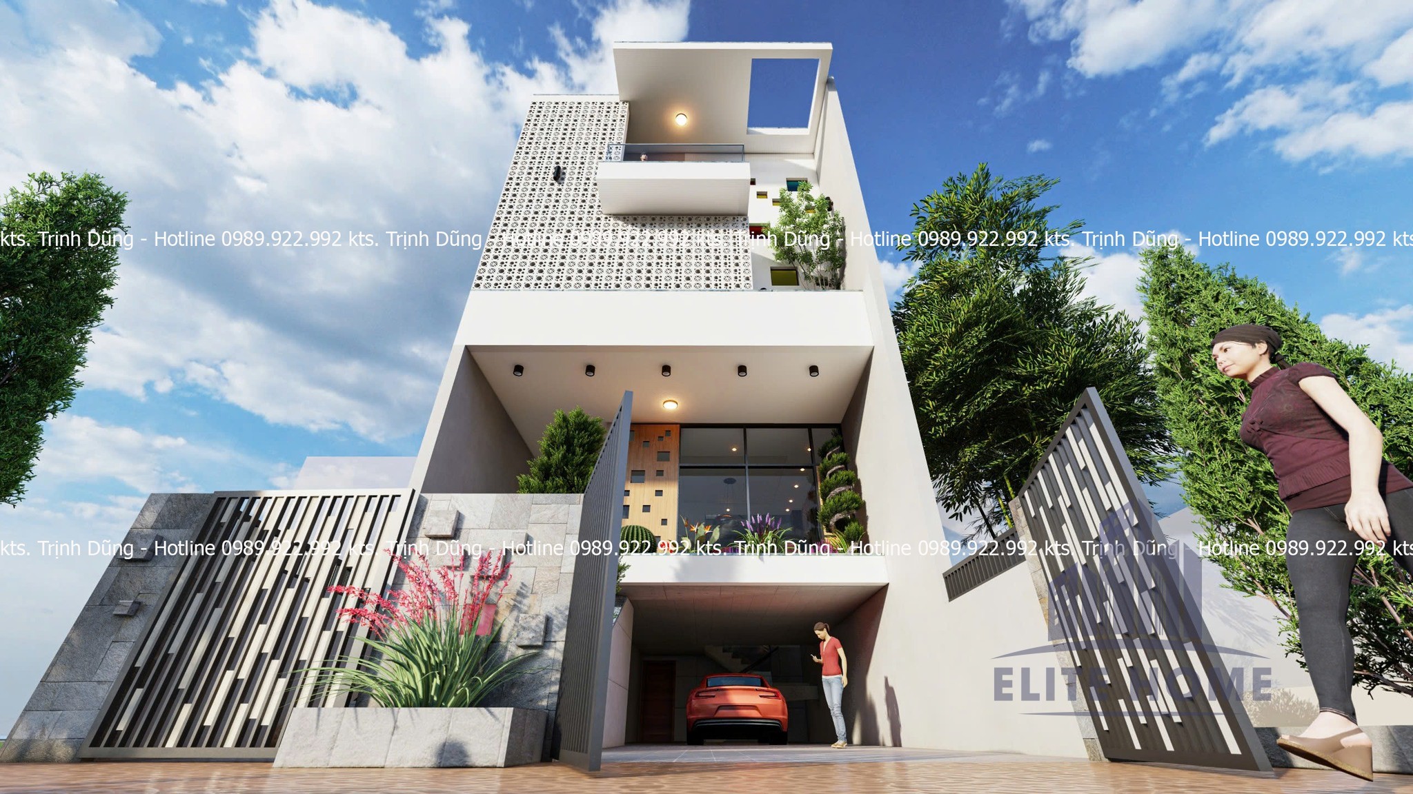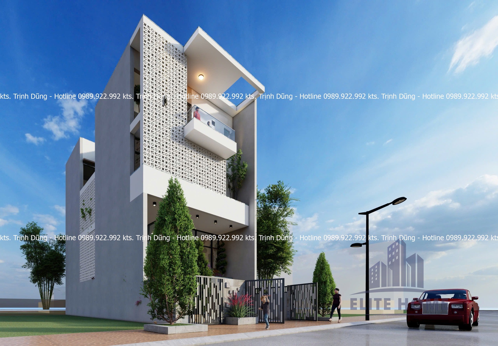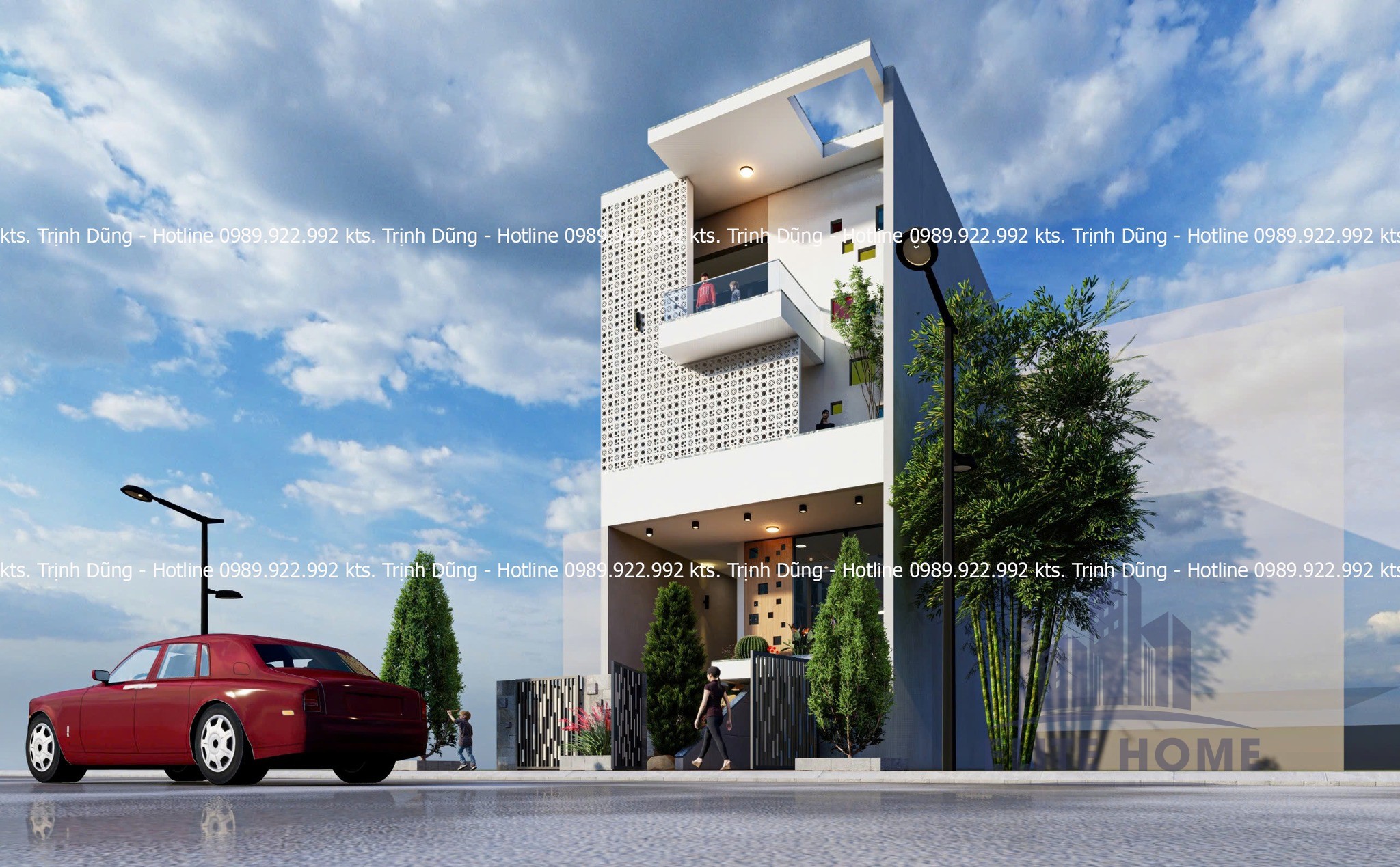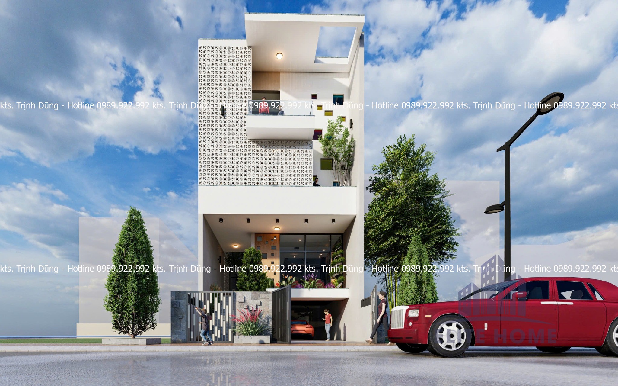 | Giải pháp kiến trúc: | Mặt tiền Gạch bông gió & Không gian xanh |